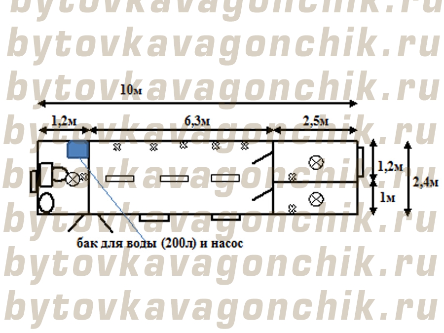 - раковина эмалированная со смесителем в сборе – 1шт.;